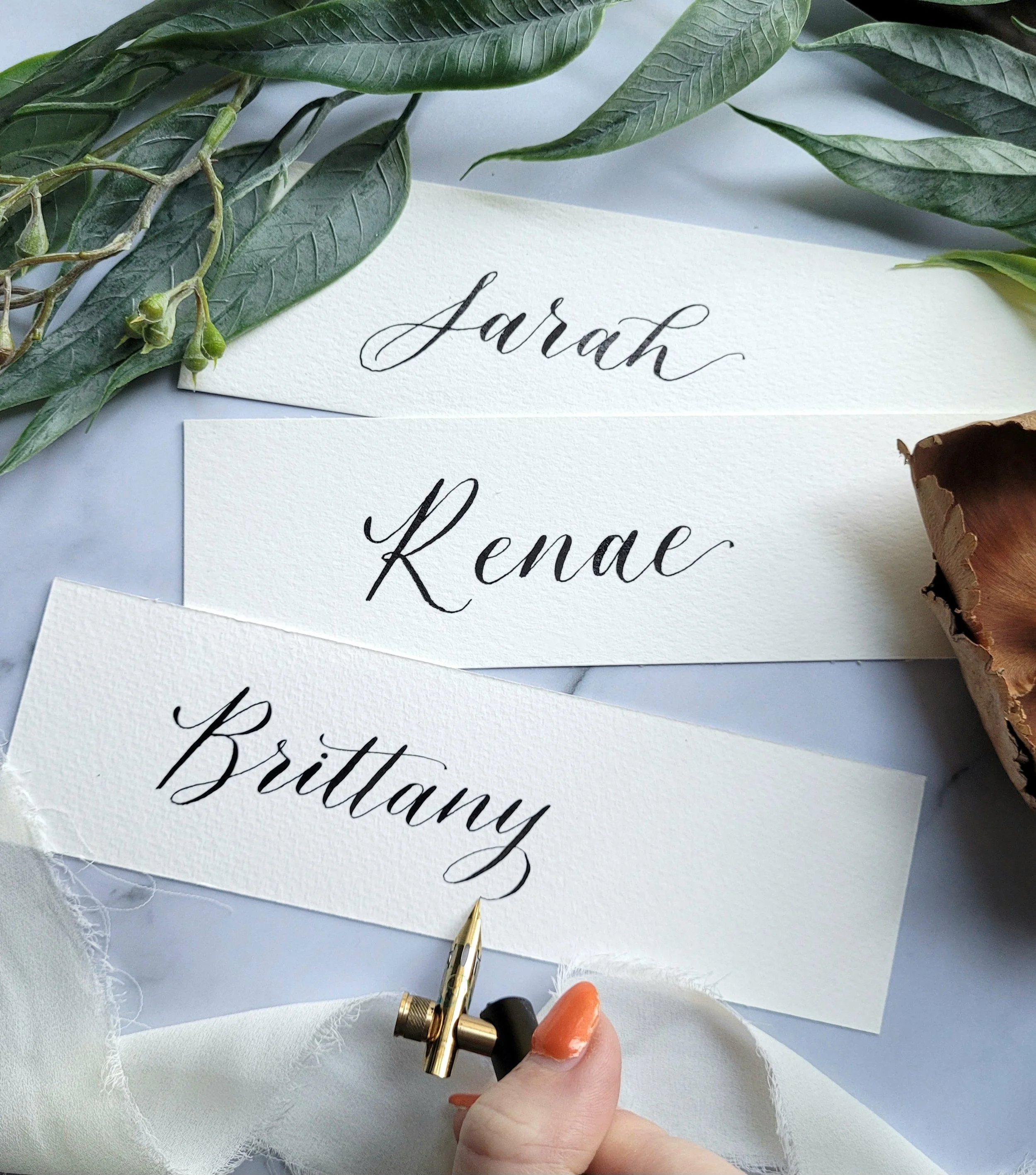 Hand-lettering is ideal for ornaments, stadium bags, totes, gift tags, leather — basically anything that can’t be engraved! It allows me to use a wide variety of colors and styles and is ideal for when you need a quick turnaround time.